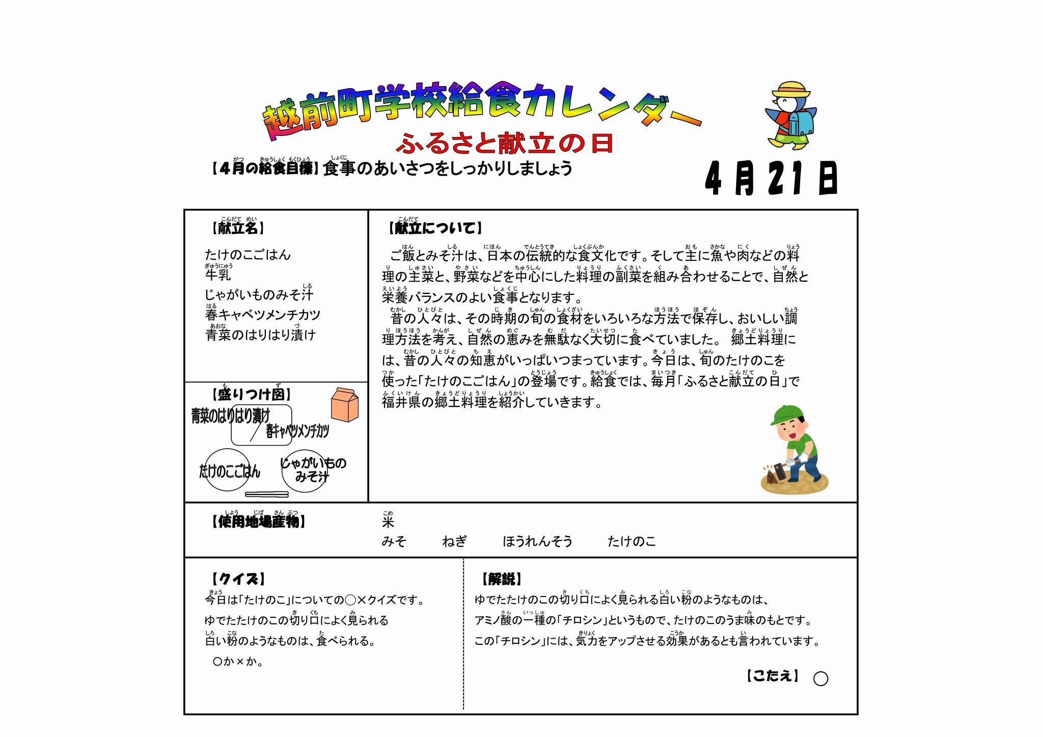 越前町の地場産献立(令和8年4月号)